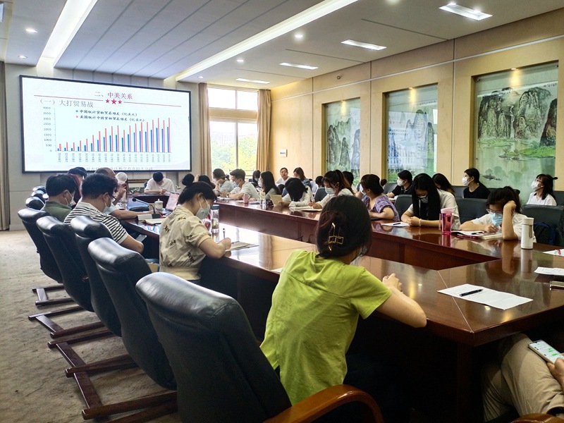 谭元敏主要从“中国周边安全环境分析”、“中国与主要大国关系”等方面展开此次讲座。他介绍了我国海陆的基本情况,在对比分析美俄周边环境的基础上归纳了我国周边安全环境的有利和不利因素。面对百年变局,谭教授梳理了中美关系的发展历程,深入分析了美国无端遏制中国的原因和举动,并强调任何势力都无法阻挠中国特色社会主义现代化和中华民族伟大复兴中国梦的实现。