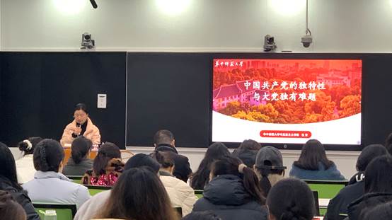 包安博士围绕中国共产党的独特性与大党独有难题这一主题,以习近平总书记相关讲话为切入点,重点向与会师生阐述了中国共产党的独特性以及这些独特性背后蕴含的大党独有难题的基本样态。包老师从中国共产党的性质、规模、角色、地位四个方面阐释了其独特性和独有难题,四者兼备方为独特,缺少任意一方面便算不得中国共产党独有。