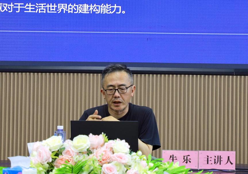 牛乐教授以他近期有关非物质文化遗产哲学研究的系列组文为依托,深入探讨了“非物质文化遗产”概念意涵的演变、“非遗本体论”,以及他首创的“云修辞”等围绕“非遗哲学”这一核心概念的学术术语体系。整场讲座充满哲学思辨色彩,为学院师生开启了一片全新的知识天地。