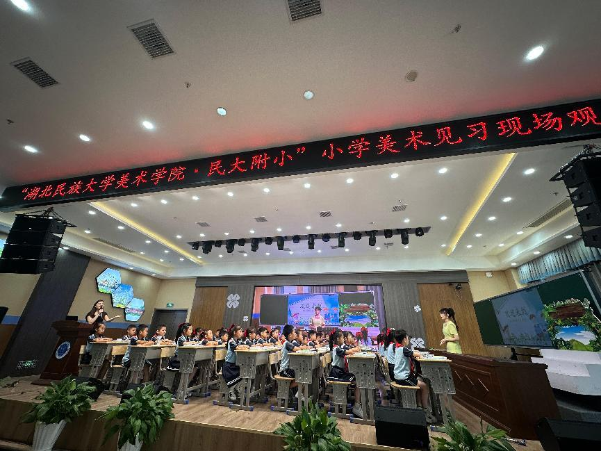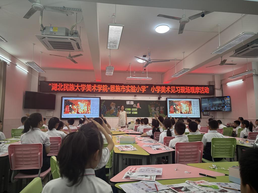 2025年6月10日至16日,365电子娱乐官方网站美术与设计学院组织2022级美术学专业学生,在孙荣誉、高琴、王明忠老师的带领下,深入恩施市舞阳中学、恩施市实验小学、365电子娱乐官方网站附属小学及恩施市高旗实验小学,圆满完成了为期一周的教育见习活动。本次见习聚焦中小学美术教育一线,通过沉浸式课堂观摩,助力师范生提升教学实践能力,深化对基础美术教育的认知。