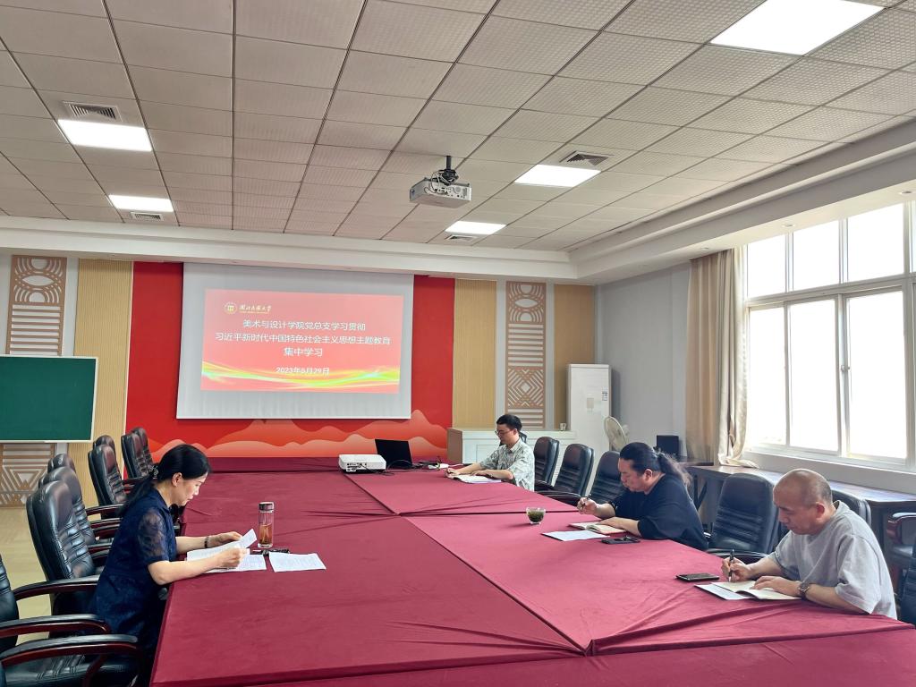 5月29日,6月1日,6月5日,美术与设计学院党总支持续深入开展学习贯彻习近平新时代中国特色社会主义思想主题教育学习活动。以上三次集中学习,分别由党总支书记田英、院长石庆秘、副书记杜锐领学《中国共产党章程》《高举中国特色社会主义伟大旗帜,为全面建设社会主义现代化国家而团结奋斗》《习近平著作选读(第一卷)》等内容,并对个人自学内容进行了安排。