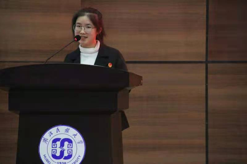 活动伊始,全体起立奏唱团歌和重温入党誓词。随后,上一期优秀学员代表张莎发言,她结合自身经历谈到青马工程在高校思想教育工作中的战略意义不容忽视,青马人应自觉强化马克思主义武装,发挥新时代青年学生的先锋模范作用。紧接着,本期学员代表祁丹悦同学进行发言,她指出作为学生干部和新青年要承担历史使命,做有理想信念的骨干,用实践激发潜力,起到表率作用,并就如何成为一名优秀的青年马克思主义者分享了自己的思考。
