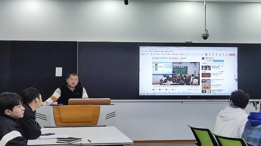 会议分四个阶段进行。第一阶段,同学们齐唱团歌《光荣啊,中国共青团》。第二阶段共同观看由中国政法大学郭继承教授讲授的思政课视频《国运》。第三阶段各组分组讨论,畅谈感受,学生干部纷纷结合自身谈感受,文学与传媒学院冯朝林同学表示作为中国人要坚定民族自信心,要充实精神世界,明确理想信念。
