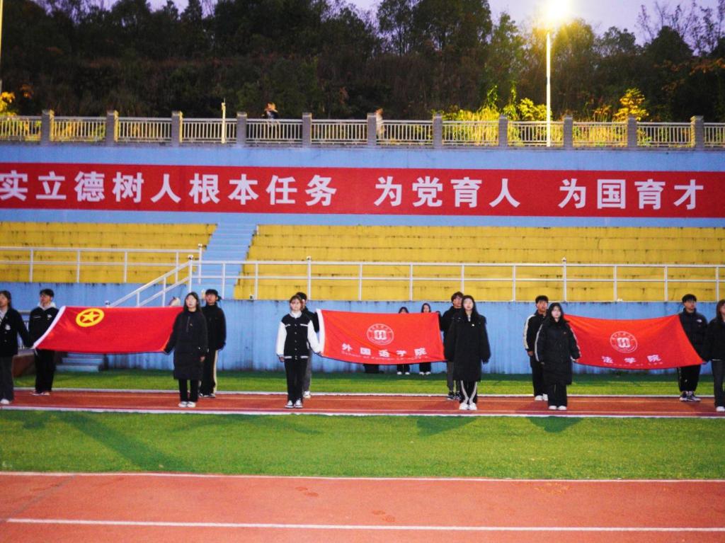 11月27日,外国语学院与法学院在五环体育场联合举行以“国旗下的民大青春”为主题的特别团日活动,外国语学院团总支书记周婷老师、法学院团总支书记谢学婧老师及两院全体大一学生共同参与本次活动。