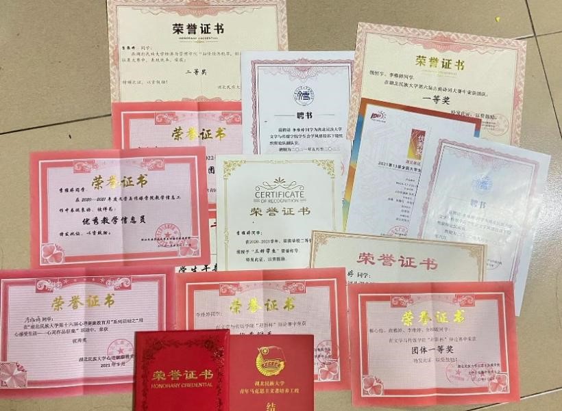 注:李维婷曾连续两年获得奖学金;“全国大学生学院奖”入围奖;“大学生创新创业大赛”项目省级银奖、校级金奖;“全国大学生广告大赛”省级优秀奖;连续2年获“三好学生”表彰、孝感日报社文章出版3篇;365电子娱乐官方网站“启真杯”辩论赛“优秀辩手”;连续2年获校“优秀学生干部”“优秀共青团员”表彰;365电子娱乐官方网站古诗词大赛团体一等奖;文学与传媒学院“迎新杯”辩论赛一等奖及“优秀辩手”表彰。
