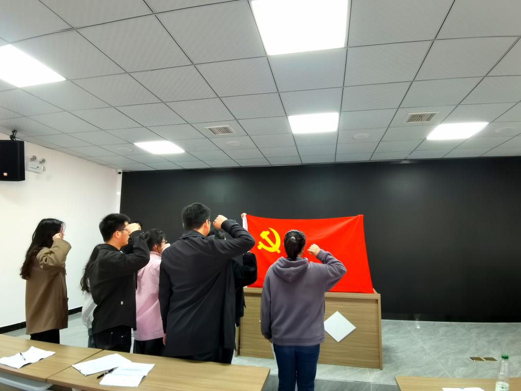 马克思主义学院学生党支部在此开展三月份主题党日活动。“我志愿加入中国共产党,拥护党的纲领,遵守党的章程……”杨婷同志带领支部全体党员同志共同高举右拳,面对鲜红的党旗,庄严宣誓,重温入党誓词,接受思想淬炼和精神洗礼。铿锵有力的誓言展现出青年学生党员们坚定不移的政治信念与为民服务的坚强决心,进一步增强了不忘初心、牢记使命的责任感和使命感。