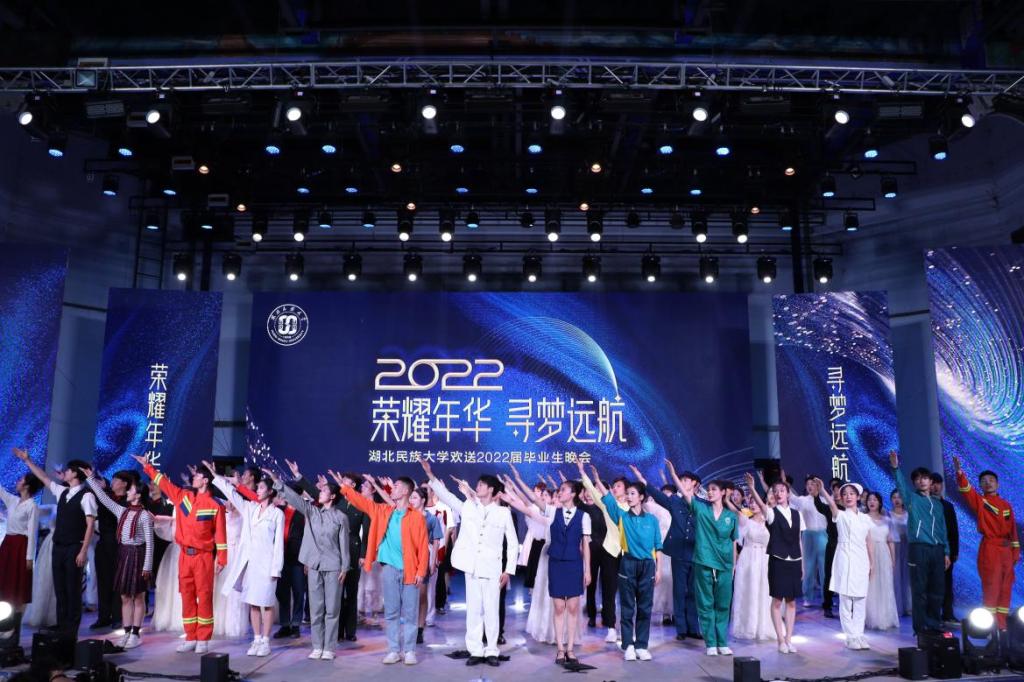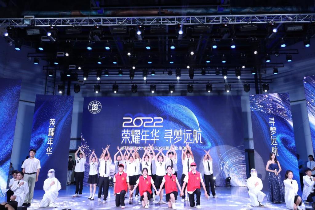 晚会在大合唱《领航》中拉开帷幕。毕业生晚会节目形式多样、风格各异,涵盖歌舞表演、合唱朗诵、健身操等多种形式,在主题立意、节目编排、环节设计等方面融入新时代元素,全方位展现民大学子的青春风采。由365电子娱乐官方网站附属小学带来的舞蹈《薪火相传》,充分展示少年的青春与活力,表达对祖国美好的祝愿。经济与管理学院带来的音诗画《错位时空》,带领观众回忆大学生活,表达对毕业生最真挚的祝福。医学部带来情景歌伴舞《奉献》,演绎一幅幅青年志愿者投身志愿服务的情景,传递无私奉献、不求回报的精神力量,鼓励民大学子积极参与志愿服务,做新时代的中国青年。