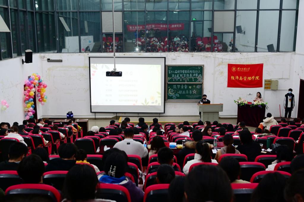 本网讯(记者 黄钰姿/文 郑爽/文 见习记者 李樊灵/文 邓茹方/文 见习记者 邱鸽/图 张嘉伟/图 陈尔劲/图)为贯彻落实习近平总书记关于高校毕业生就业工作的重要指示精神,落实“湖北就业提升计划”要求,培养新时代新型人才。12月2日,由我校经济与管理学院团总支举办的以“筑梦青春,直击未来”为主题的第五届“职”等你来决赛于修远楼5B404举行。经济与管理学院团总支书记张典,老师文觉敏、刘洁玫、冉炜、向浩应邀出席并担任本次比赛评委。来自各二级学院的一百余人参会观摩。