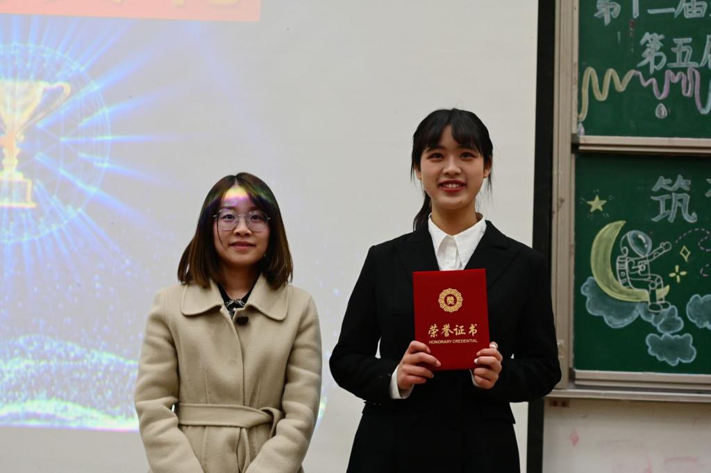 参赛选手千岩竞秀,共同为观众打造独具特色的模拟求职活动现场。在自我展示环节中,来自马克思主义学院的1号选手胡小亿利用SWOT分析法对个人工作及志愿服务、思想引领等方面进行分析,阐明自身应聘优势及未来规划。来自经济与管理学院的3号选手张阳结合自身专业特点与综合实践相结合,充分展示自己在就业择业中的优势及规划,实现从在校学生到职场新人的角色转换。在情景模拟环节中,来自教师教育学院的6号选手董纹瑾在面对“当代幼师教学质量水平”相关问题时,以公立和私立两类学校为阐述主体,分析培养幼师的利弊。经过评选,6号选手董纹瑾以18.66的高分摘得桂冠。