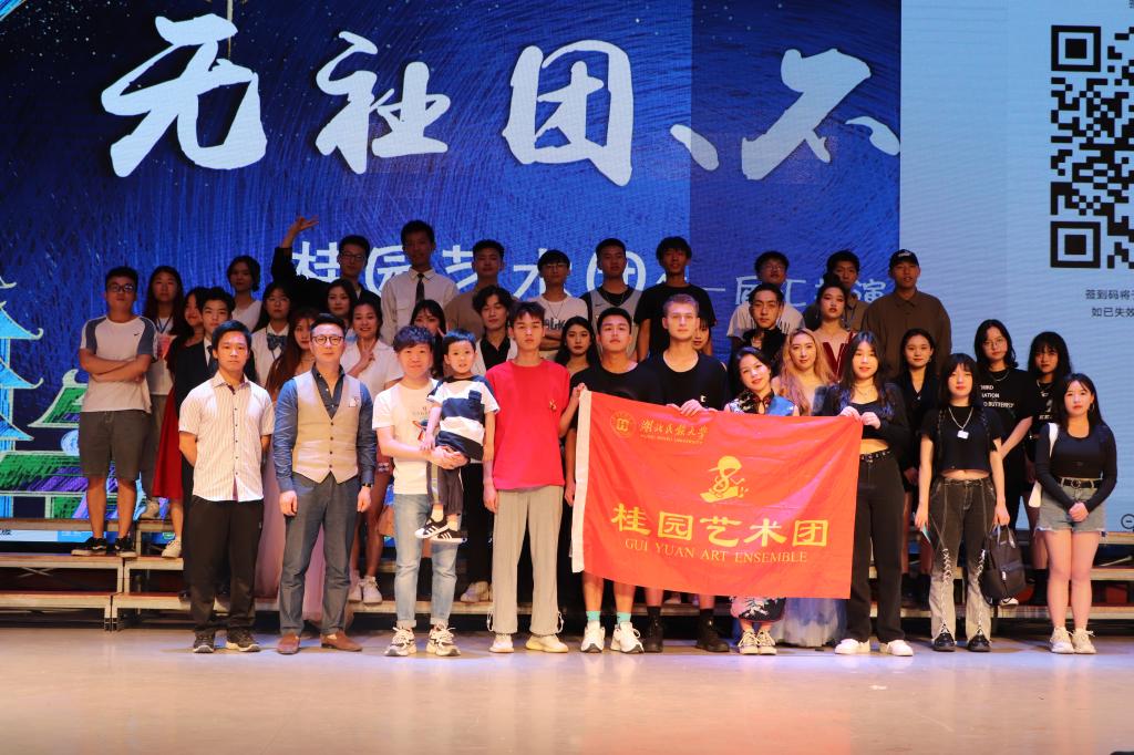 本网讯(记者 冉婵娟 段天义 田思雨/文 周俊彤 田慧/图)6月5日晚七点,我校桂园艺术团于音乐舞蹈学院演播厅举办汇报演出晚会。文学与传媒学院老师谭若冰,乐队老师田冲受邀出席,现场约400人观看。