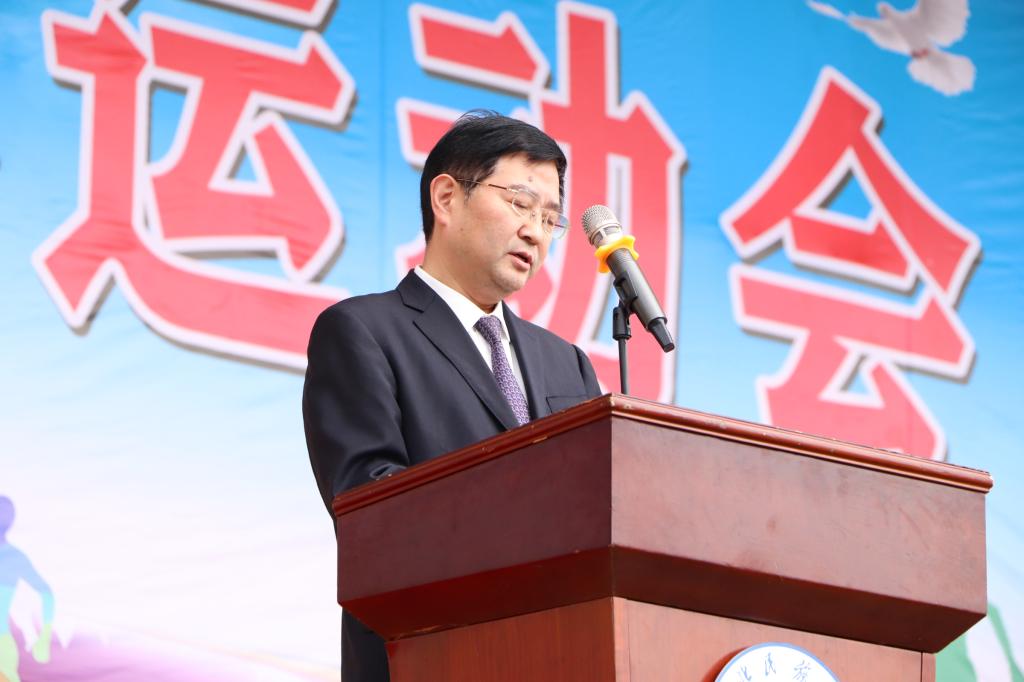 邓磊致开幕辞。他首先表示,运动会是我校贯彻“全方位育人”教育思想的重要载体,是全校师生体验激情人生的重要良机,有助于实现师生“育体”与学校“育人”的有机结合。邓磊对学生提出希望全体运动员和裁判员能够秉承“锻炼身体,增强体魄”的宗旨,在运动中展现“顽强拼搏,勇于挑战”的精神。