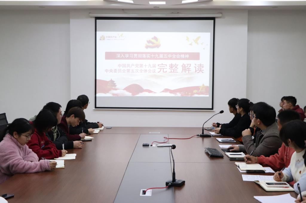 11月19日,校团委组织开展党的十九届五中全会专题政治理论学习,校团委成员和各学院(部)团总支学生负责人共同参加学习。