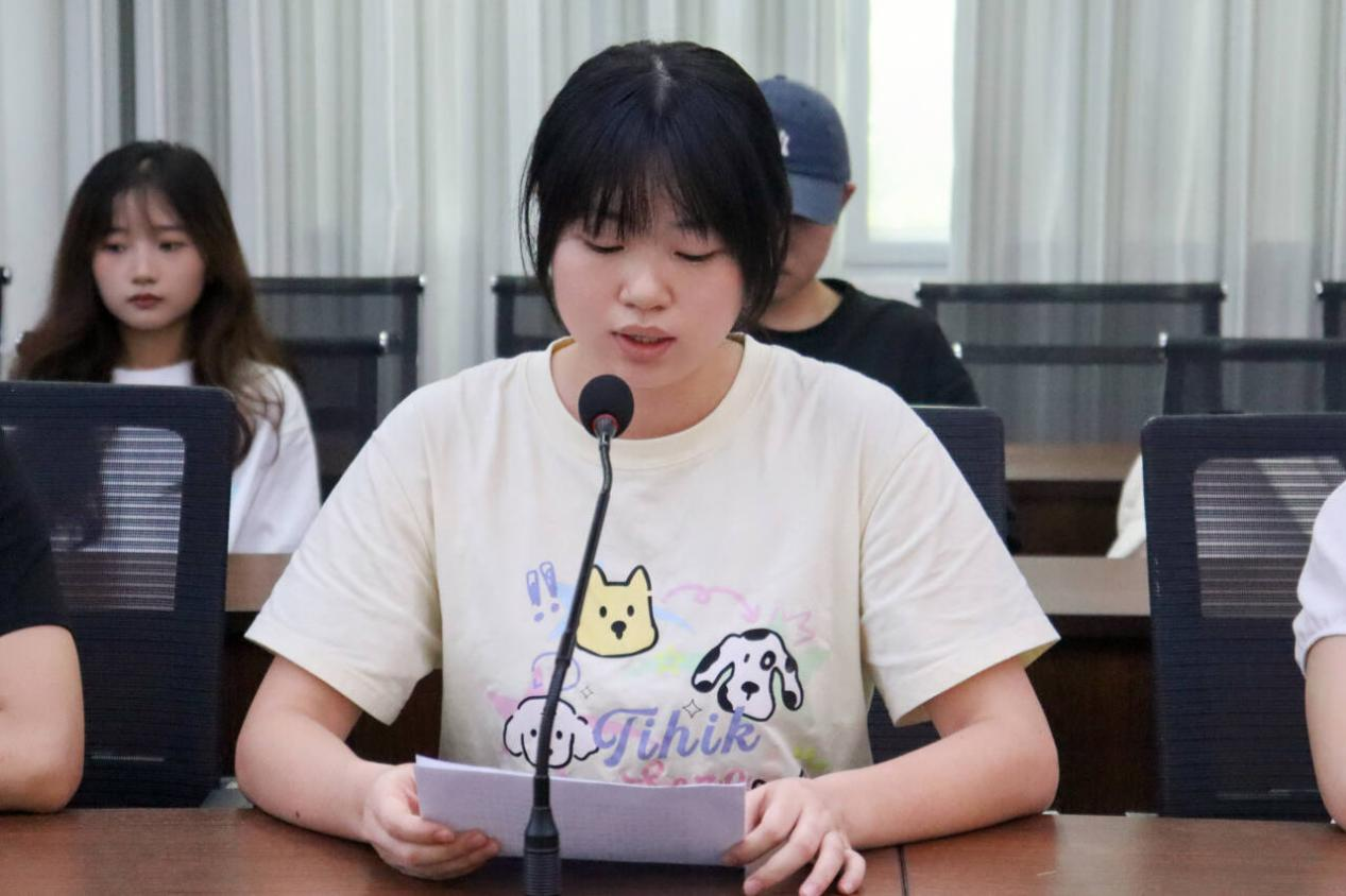 会议伊始,全体成员观看卸任人员、留任人员和新任人员具体名单。随后谭燚、周小雨、向心玥代表卸任干部发言,她们分享了自己在青年媒体中心工作的历程和感悟,表达了对中心浓厚的热爱与不舍,并寄语新干部们要坚守初衷、勇敢前行,相互支持、并肩作战,共同将青年媒体中心建设得更好。