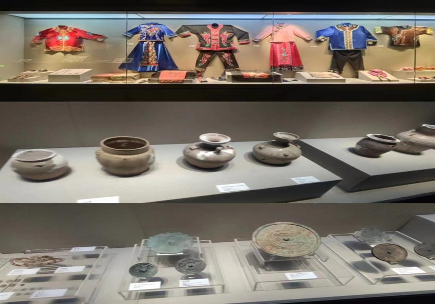 与此同时,第二支队的成员们也在恩施州博物馆中探寻着历史的痕迹。博物馆内,生牙化石、剑齿象骨架等古老遗物引人追溯往昔,而精美的土家族织锦则以绚丽色彩和独特图案展现了民族勤劳与智慧。古老的青铜器造型独特,锈迹斑斑见证了岁月的变迁。