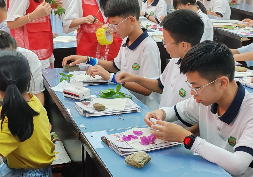 6月30日,“星火”志愿团队踏入七里中学举办了一场别开生面的“树叶拓印”活动,旨在引导学生们领略科学艺术的魅力,捕捉大自然独有的风姿。