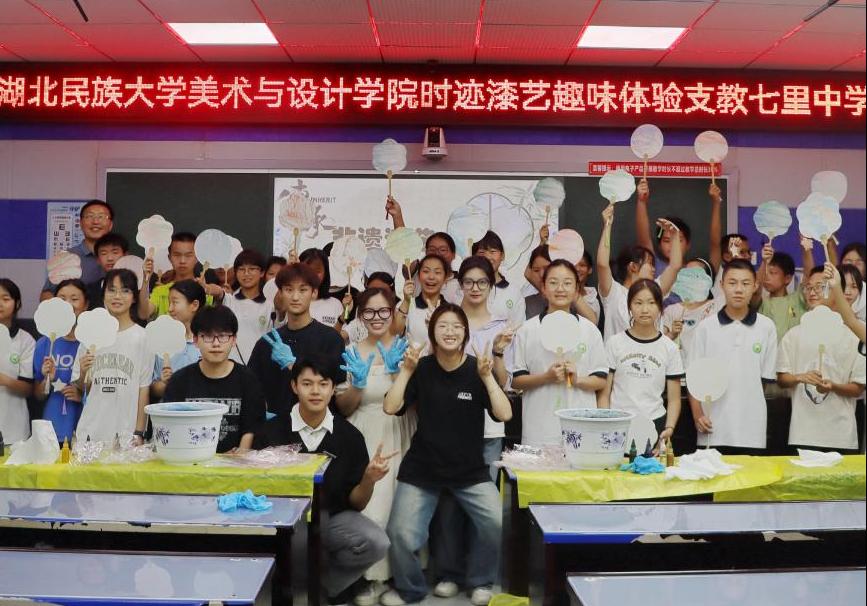 6月27日至30日,我校美术与设计学院“时迹漆艺工坊”社会实践团队,将美育带到了恩施州七里中学,团队开创了“趣味体验课程”,以新形式、新方法、新内容将美育与非遗结合,通过课程中的讲解与实践环节感受非遗。