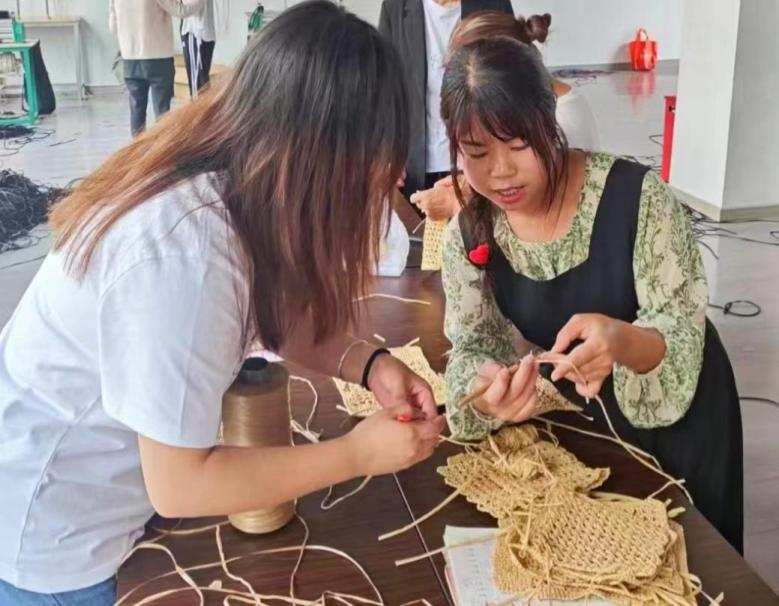 工作人员教授编织技巧
