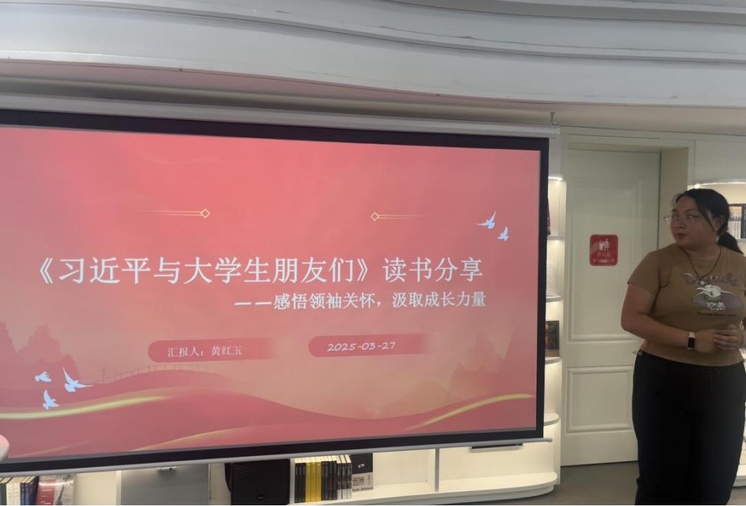 分享会上,黄红玉结合《习近平与大学生朋友们》,深情讲述了习近平总书记对青年一代的殷切期望和亲切关怀。她分享道:"书中那些平实而深刻的对话,让我深刻感受到党和国家领导人对青年的重视。作为新时代大学生,我们更应脚踏实地,将个人理想融入国家发展之中。"