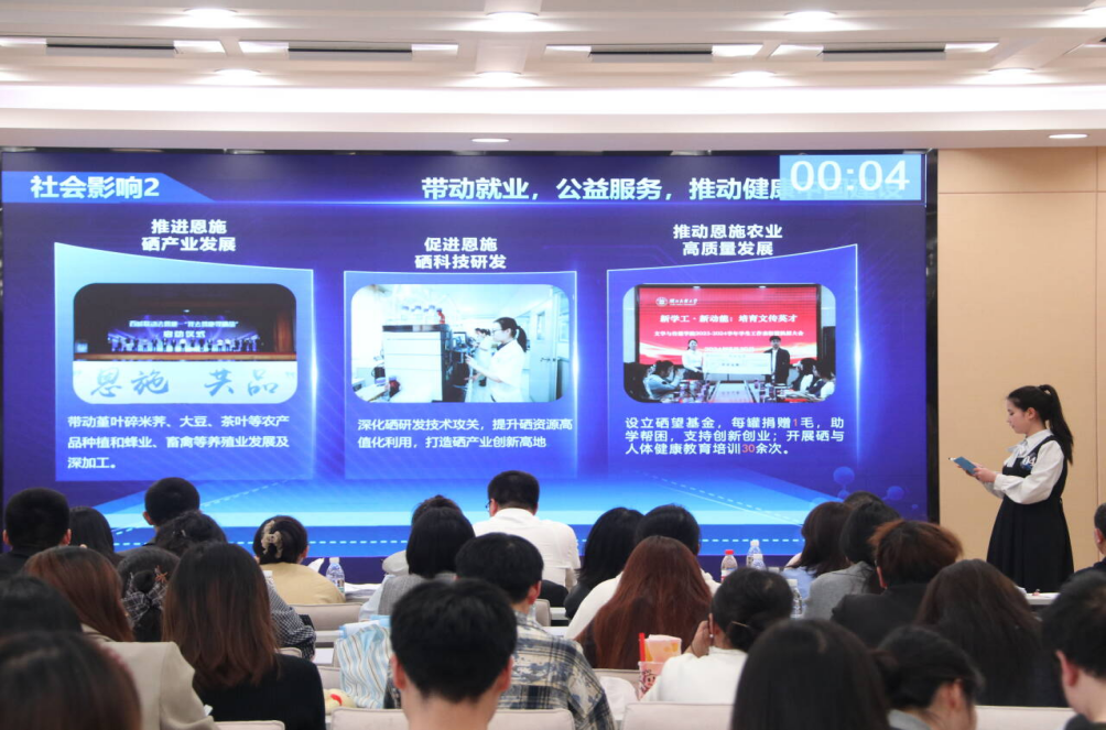 决赛采用“3分钟项目陈述+2分钟现场提问”的赛制。答辩现场,各项目聚焦不同领域展现创新思路:先进制造与新材料领域的《叶变纤知》关注绿色能源与节能技术,《轻弹芯材——氧化锌改性AC发泡EVA技术产业化领航者》以工程创新技术解决实际痛点;生物医药与健康科技领域,《“息”刻守护——基于人工智能的全国产化多导睡眠监测装备》《列侦探——双RNA靶向前列腺癌早期检测方法》以硬核技术守护民生健康;新消费与文化创意领域,《鹿小染——中国巴楚非遗传承“扎染”产业的践行者》推动传统扎染技艺与现代产业模式结合,《红韵硒乡——湘鄂西苏区红旗数字化与富硒产业协同振兴项目》等项目则将思政教育、红色文旅与地方特色深度融合;社会治理与民生服务领域,《“融宠于治”:城镇社区宠物健康公共服务体系的创新构建与实践路径》等项目聚焦社区治理需求填补细分空白。