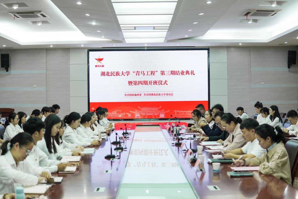 10月19日下午,我校“青马工程”第三期结业典礼暨第四期开班仪式在行政楼3号会议室举行。学校党委组织部常务副部长洪雁,党委宣传部常务副部长罗翔宇,学生工作部部长方云霞,校团委书记吴珊,第三期、第四期“青马班”班主任及全体学员参加典礼。校团委副书记刘亚琼主持活动。
