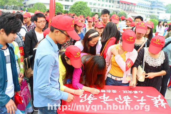 法学院青年志愿者在旗帜上签名