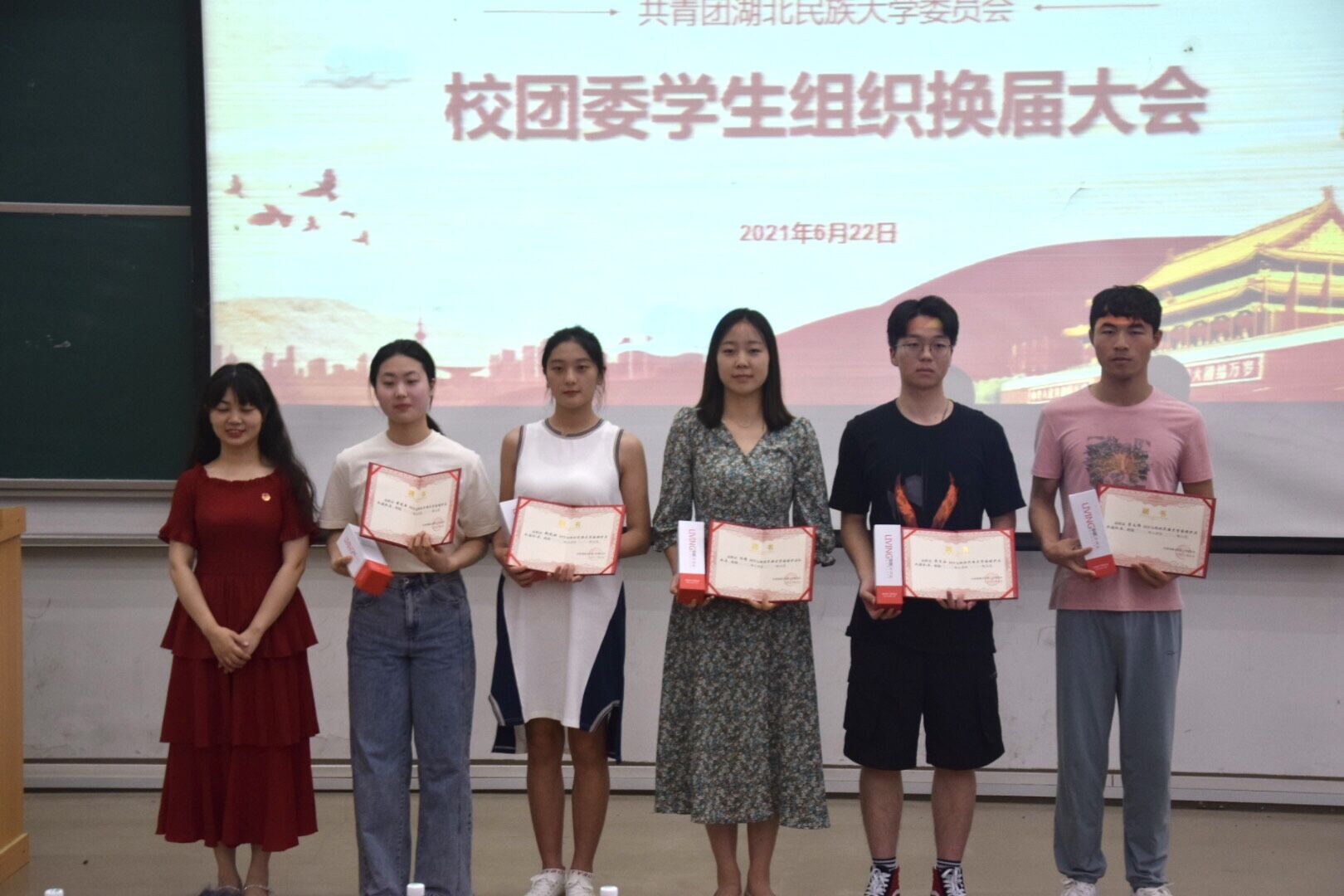 本网讯(记者 黄钰姿/文 段天义/文 侯默/文 付玮婷/图 周俊彤/图)6月22日,我校学生会、团委、青年媒体中心、国旗护卫队四大学生组织在修远楼5A207教室举行换届大会。校团委书记方云霞、校团委副书记谢晖、吴珊、社会实践与志愿服务部主任邓丽参会,换届大会由校团委办公室主任彭弥主持。