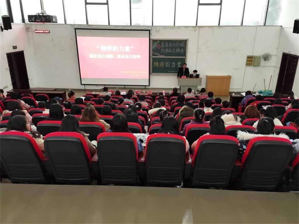 本网讯(见习记者 王丽 张瑶/文 刘睿 鲁心雨/图)为引导大学生健康发展,激励大学生奋力拼搏,12月3日,我院在修远楼5B509学术报告厅举办以“愿星光之闪耀,照未来之榜样”为主题的交流活动。我院党总支书记曹召胜老师、学生科科长张冰老师、团总支书记熊霞老师,优秀学生代表邓逸然、余帆、方澳历、何套、余雪梅出席此次活动。我院全体大一学生参与此次活动。