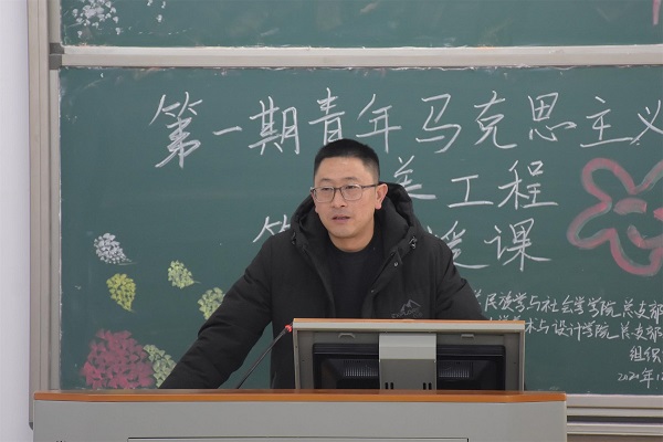本网讯(见习记者 周树洋 张梦婷/文 刘睿 余喆/图)为提高我院学生思想水平和政治觉悟,完善学生骨干队伍建设,126日,我院于修远楼5A-202教室举办以“青春正好劳筋骨,圆梦更须加油干”为主题的第一期青年马克思主义者培训班第四次授课活动,我院党总支书记曹召胜老师应邀出席并担任主讲人,第一期青年马克思主义者培训班全体学员参与聆听。
