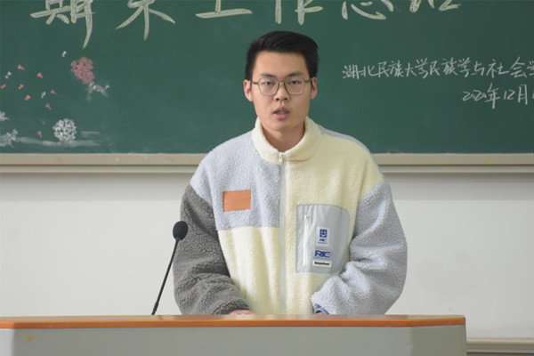 大会伊始,熊霞老师对我院上半学期的团学社工作进行总结,她首先肯定了各部门的工作成果,并表示与去年相比,各部门活动既有亮点,又有进步。随后,她分别从“加强团学社合作”、“继续坚持以'五个民社'为指导”、“做好换届工作”、“增强创新意识”以及落实“团学干部读书计划”这五个方面对接下来的团学社工作提出期许。最后,她再次强调,团学社干部应不忘“为学生服务,为老师分忧”的初心与责任,与时俱进、开拓创新,积极开展有学院特色、专业特色的活动,努力打造出一系列有展示民社风采的品牌活动。