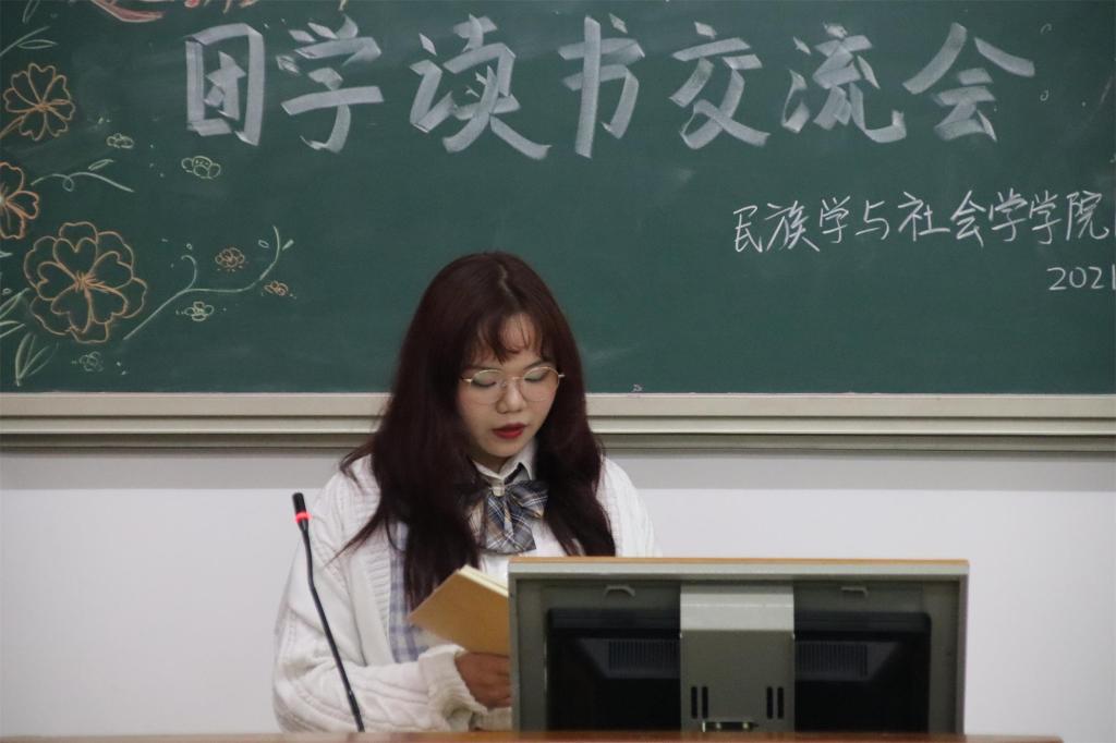 活动伊始,团总支和学生会各部门成员代表依次上台,分享个人在寒假期间阅读的书籍。代表们展示的书目种类丰富,充分体现部门成员丰富多彩的个性,心理健康部代表吴六金对所读书籍《活着》中有关生命的理解,给到场人员留下了深刻印象。本次读书交流会重在分享各成员的阅读心得体会,各代表结合自身经历,紧密联系自己阅读的书籍向大家展示书本之美和所悟之理。其中,刘圣富在分享《目送》一书时,将自身照顾父亲的经历与书籍内容相结合,在情感上与作者产生深刻共鸣,向各成员传递学会珍惜与承担责任的重要性。