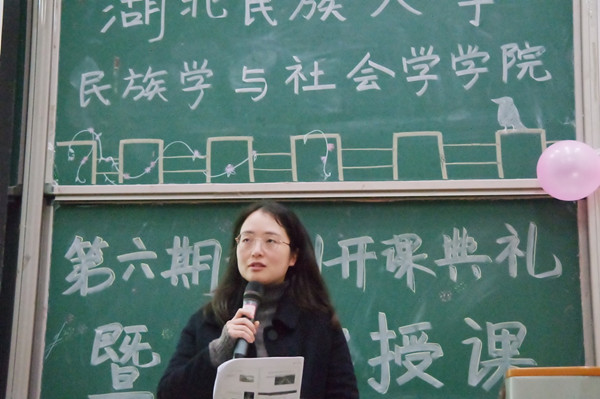 其后,熊霞老师以“铸牢中华民族共同体意识”为主题进行第一次授课。她从中华民族共同体意识的内涵、背景以及当代青年如何践行中华民族共同体意识三个方面展开讲述。在内涵的讲解中,她以中华民族共同体意识的形成过程为出发点,梳理出民族共同体的内涵:各民族共同开阔辽阔的的疆域、共同书写历史悠久的历史、共同创造灿烂的文化、共同培育伟大的精神。最后她从国家统一、民族团结、中华民族伟大复兴的角度阐述中华民族共同体意识的现实意义。面对在座新生干部,她讲到青年一代在维护祖国统一,民族团结上发挥着至关重要的作用,青年一代应改造自身思想,积极培育民族团结意识、提升政治意识、法律意识、共建共享共同发展的命运共同体意识。