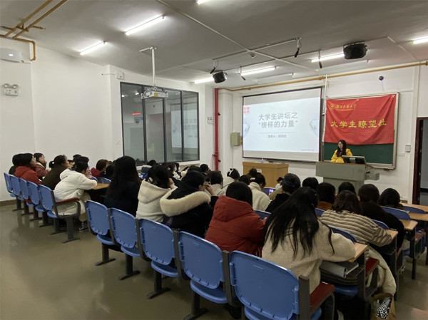 本网讯(记者 陈慧超/文 陈诺/图)为激励新生对美好人生的追求,促进其奋发图强,12月12日,我院瞭望社在修远楼5A506教室成功举办大学生讲坛活动。马克思主义学院19级国家奖学金获得者祁丹悦出席此次活动,我院全体大一学生参与此次活动。