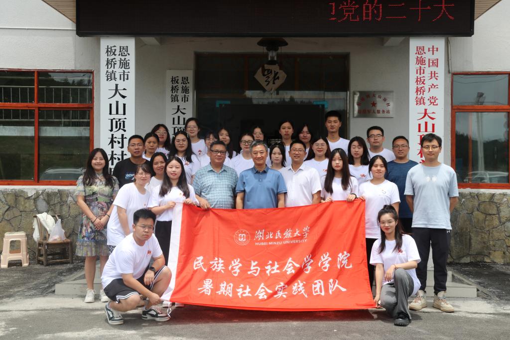 本网讯(通讯员 张晗)7月15日,学校党委副书记、校长顿祖义率领学院党总支书记曹召胜、恩施市委统战部副部长张远虑到恩施市板桥镇大山顶村看望慰问我院正在开展暑期社会实践活动的师生。