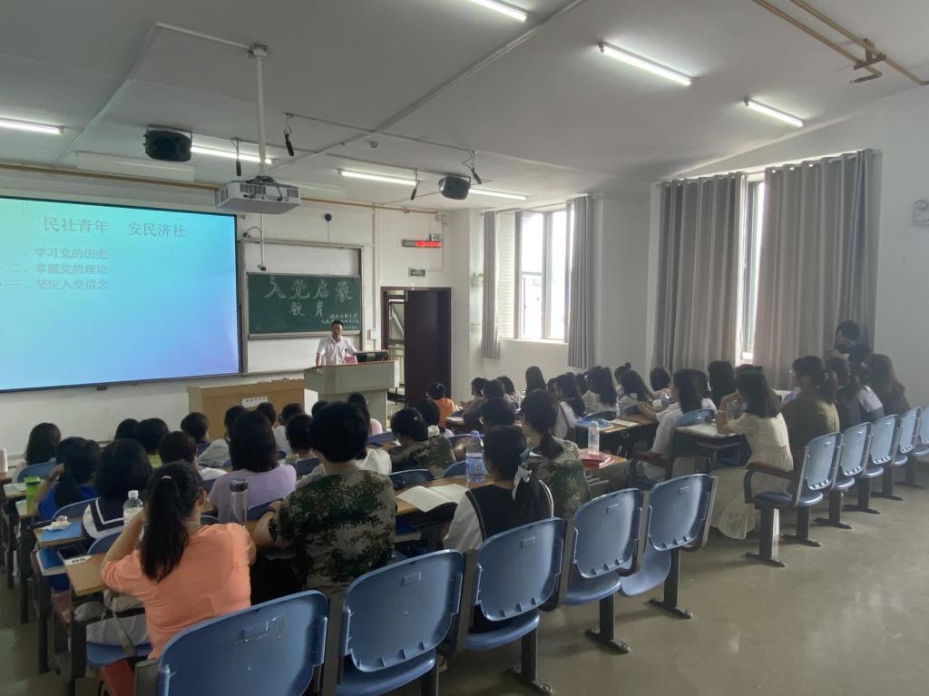 曹书记分别从“学习党的历史”、“掌握党的理论”和“坚定入党信念”三方面展开入党启蒙教育。曹书记首先通过《觉醒年代》部分剧情并结合“安民济社”精神对共产党奋斗征程进行阐述,回眸百年党史,与在座学生在责任、担当和情怀上产生共鸣;随后,他从党的性质和宗旨入手,着重激励大一新生奋发图强,肩负起青年之使命;接着,他对入党流程和入党志愿书的规范书写展开详细介绍,希望新生全面了解党的成长史,树立时刻向党看齐的思想旗帜;最后,曹书记从政治前途、学术进步和人生幸福三个角度与新生共勉,希望其提高思想领悟、灵活运用生活技巧,探索属于自己的人生路!