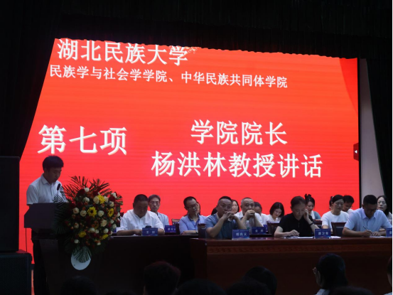 杨洪林发表讲话。他首先介绍了学院的发展历史,专业和学科建设的基本情况,然后分别对社会学专业和民族学专业学科特点进行了阐释,要求同学们在学习过程中对专业和学科要建立系统的理论框架,同时鼓励同学们充分发挥民社青年理论结合实践的优良传统——读万卷书,行万里路。