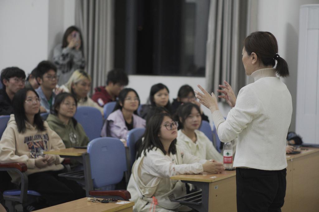 讲座伊始,唐卫青首先询问学生对社会学的认识与感受,从学生眼里的社会学引入讲座正题。随后,她结合自身从教经历,将社会学专业术语与生活实际结合,用幽默风趣的语言向学生讲解“社会学是什么”的问题。接着,她对学生所关心的就业问题作出解答,讲述社会学的就业前景并分享社会学专业的就业渠道。最后,她向学生推荐社会学专业相关书籍并对此次讲座作出总结。讲座过程中,师生互动活跃,氛围融洽。