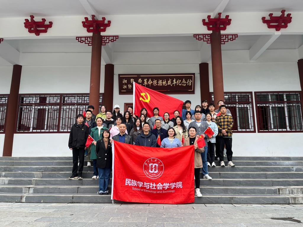(本网讯 陈礼双/文 柴格格/图)4月27日,为深入贯彻落实习近平总书记关于“把红色资源运用好、红色传统发扬好、红色基因传承好”的重要指示精神,民族学与社会学学院党总支组织教工支部、本科生支部及研究生支部一起赴咸丰县忠堡镇高笋塘村开展“缅怀革命烈士,传承红色基因”主题党日。