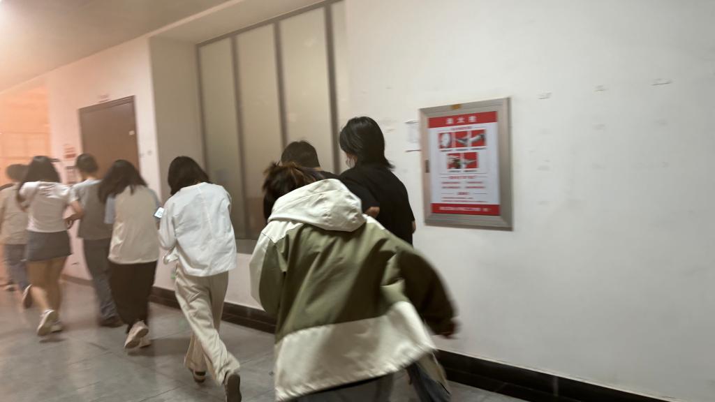 上午9点30分,随着消防警报响起,演练正式开始。模拟修远楼B栋107办公室因电路短路引发“火情”,浓烟迅速蔓延。我院党总支书记曹召胜立即启动应急预案,组织师生弯腰低姿、捂住口鼻,沿安全通道快速撤离至指定集合点。同时,灭火组迅速使用灭火器控制火势。整个过程反应迅速、配合紧密,达到预期效果。