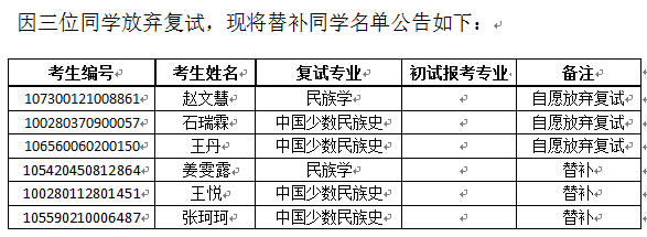 365电子娱乐官方网站民族学与社会学学院2020年硕士研究生招生复试名单(替补)