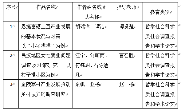 第十三届“挑战杯”大学生课外学术科技作品竞赛校级竞赛民族学与社会学学院拟推作品一览表
