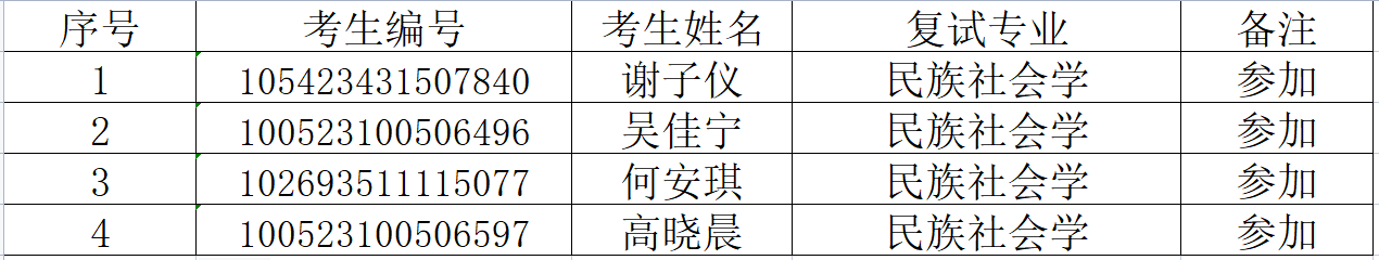 2023年民族学与社会学学院调剂考生复试名单(二)