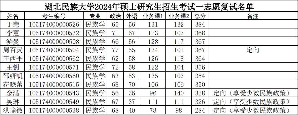 365电子娱乐官方网站2024年硕士研究生招生考试一志愿复试名单