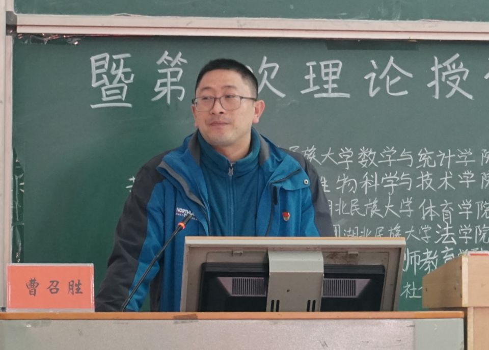 本网讯(见习记者 谌海容/文 陈舒琦 刘欢/图)为提高学生的思想政治素质,提升马克思主义理论水平,11月25日,我院联合生物科学与技术学院、体育学院、教师教育学院、法学院和数学与统计学院在修远楼5A207教室顺利开展第二期青年马克思主义者培训工程开课典礼暨第一次授课活动。我院党总支书记曹召胜、团总支书记熊霞、生物科学与技术学院团总支书记陈杰、体育学院团总支书记张弋明、教师教育学院团总支书记胡雪、法学院团总支副书记税汉典和数学与统计学院团总支副书记税峰受邀出席本次活动,我院及其他五院全体青年马克思主义者培训学员参加本次活动。