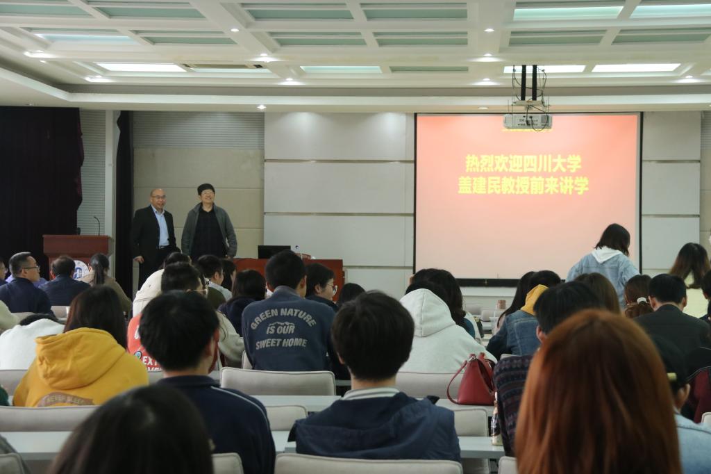 本网讯(闫聚伟/文 张晗/图)10月25日上午9点,教育部长江学者特聘教授、教育部人文社会科学重点研究基地四川大学道教与宗教文化研究所所长盖建民教授在我校德智楼三楼多功能报告厅作了专题学术讲座。民族学与社会学学院、经济与管理学院、法学院、马克思主义学院等百余名师生怀着饱满的热情共同参与了这次学术讲座。民族学与社会学学院院长谭志满主持了这次讲座。