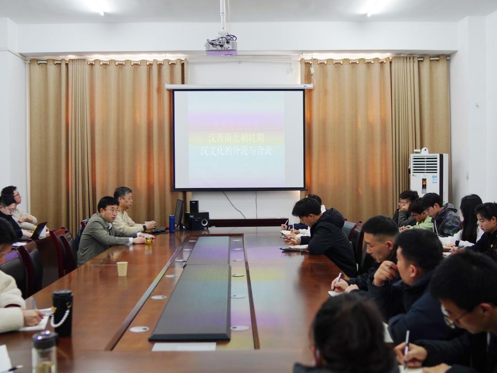 本网讯(徐茂淋/文 邵妍凯/图)3月31日,我院在修远楼5B1205学术报告厅举行学术讲座。中央民族大学博士生导师张铭心教授应邀作题为《从墓志源流看两晋南北朝时期汉文化的分流与合流》的学术报告。院长杨洪林教授主持讲座,学院师生40余人参与学术研讨。