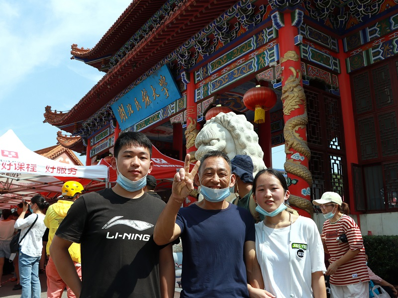 文学与传媒学院新闻传播类专业的陆若男接受采访时面带腼腆,她的父母在身旁鼓励着她。“家在贵州,孩子没有出过远门。”她的母亲说到,“因为我们这一代人很辛苦,明白学习的重要性,希望孩子能够多学一点知识,学到真本事,不断充实自己。未来有更多工作能够选择,不要像我们这么辛苦。”