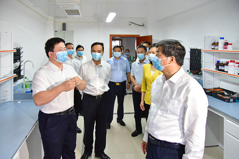 胡超文一行来到武陵山中药材检验检测中心,看望正在忙碌的老师们。“有专门研究硒的项目吗?开展多久了?进展如何?”走进实验室,胡超文饶有兴致地询问关于恩施硒资源研究的相关情况,并与现场的老师们亲切交谈。得知实验室教师李英儒是清华大学化学系的博士,胡超文竖起大拇指,鼓励他努力工作,为恩施教育多作贡献。