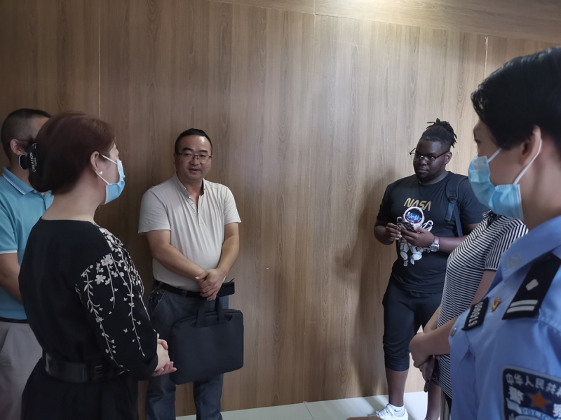 我校国际交流合作处处长、国际教育学院院长罗永健汇报了学校外籍师生的基本情况、管理举措和成效。章惠一行实地查看了我校外教和国际学生宿舍,并与国际学生亲切交谈,了解他们的工作、学习、生活情况及毕业后的打算。对留学生的汉语交流能力赞不绝口,充分肯定我校外籍师生规模虽然不大,但管理到位、效果良好,做到了小而精。章惠祝福大家在中国学业有成、生活愉快。