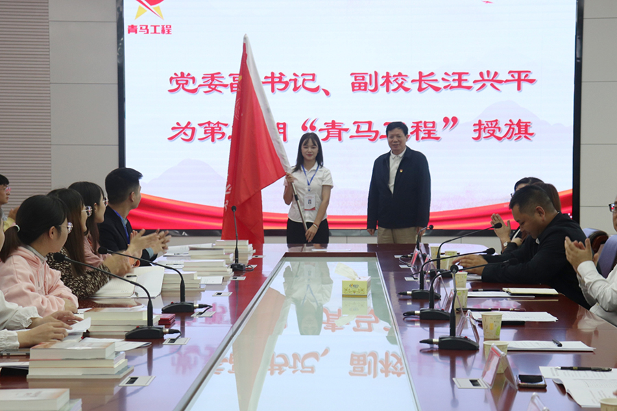 汪兴平为第二期“青马班”授旗,并对同学们提出了三点要求:要坚定马克思主义的信仰,听党话、跟党走,争做马克思主义的坚定信仰者、自觉拥护者、积极践行者;要勇担民族复兴大任,守初心、担使命,争做走在时代前列的奋进者、开拓者、奉献者;要积极投身社会实践,学真知、增本领,争做有理想、有学问、有本领的实干家。他希望结业的第一期学员带着青马工程赋予的力量,坚定信仰,勇立潮头,高扬理想风帆,希望第二期的新学员不辜负学校党委的殷切期望,珍惜机会,积极参加各项学习实践活动,与时代同心同向,与青马共同成长。