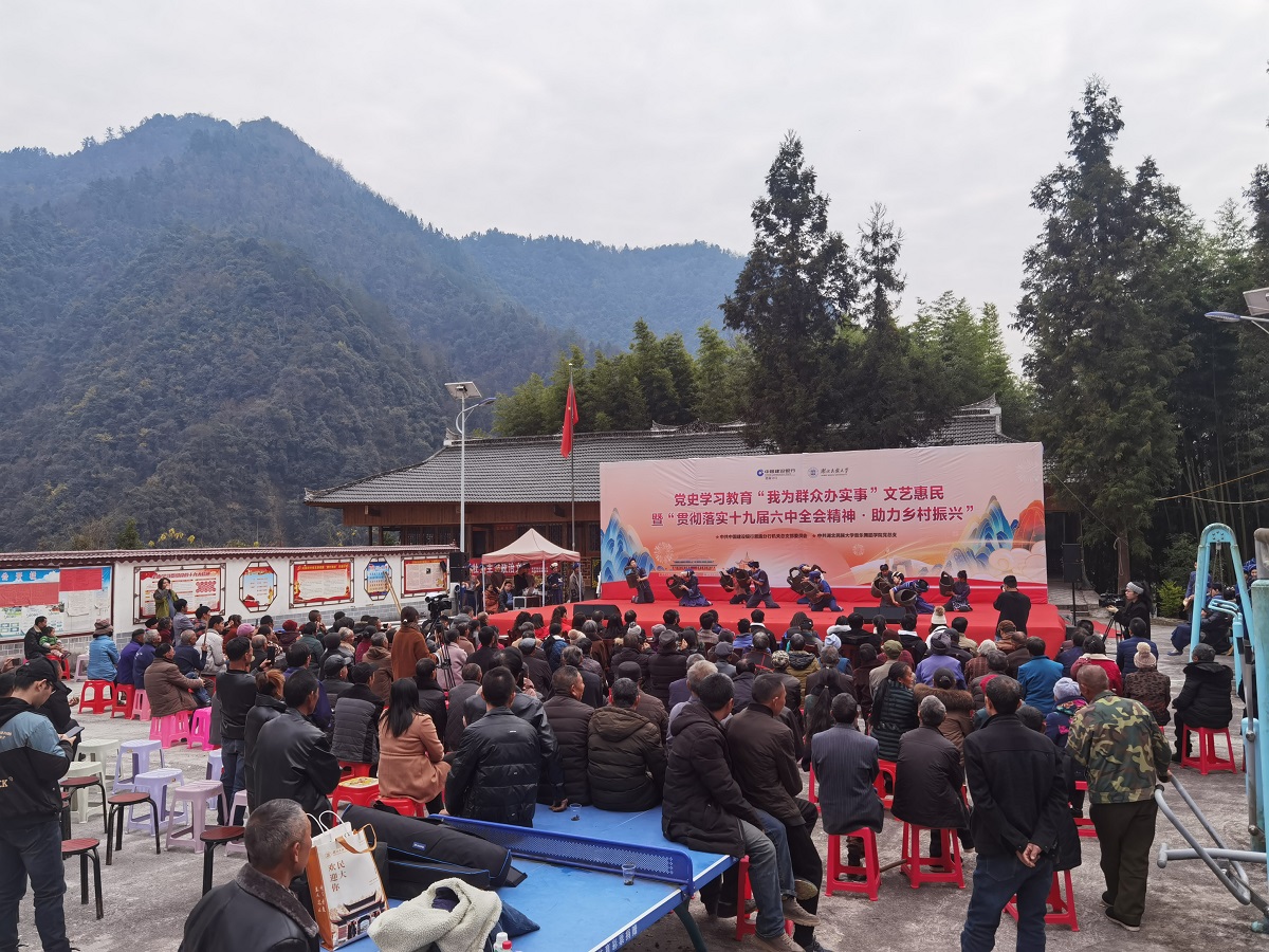 为传播好党的声音,展示好党的形象,让文艺服务扎根基层,12月9日,365电子娱乐官方网站音乐舞蹈学院联合中国建设银行恩施分行前往宣恩县高罗镇向家坪村,开展党史学习教育“我为群众办实事”文艺惠民暨“贯彻落实十九届六中全会精神·助力乡村振兴”活动,建行恩施分行员工代表及365电子娱乐官方网站音乐舞蹈学院师生80余人参加活动。